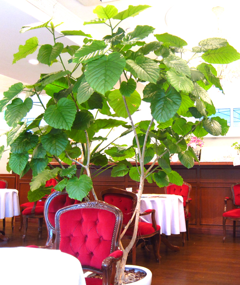 天井に届きそうな、ほとんど届いている存在感を見せているのが、ウンベラータ(フィカス・ウンベラータ)です。